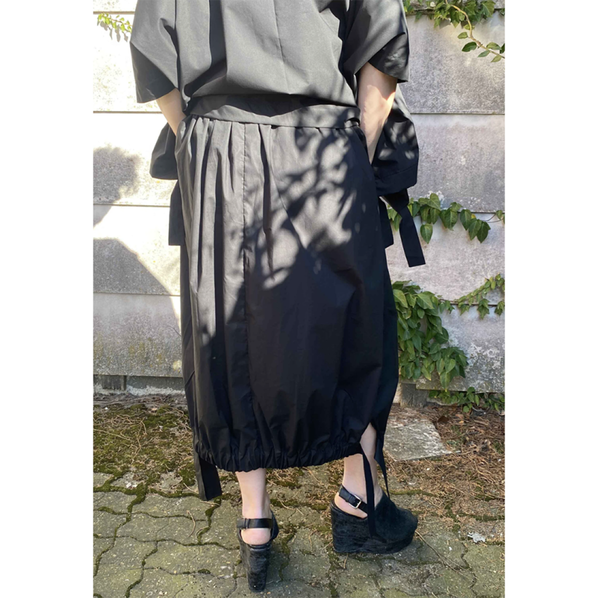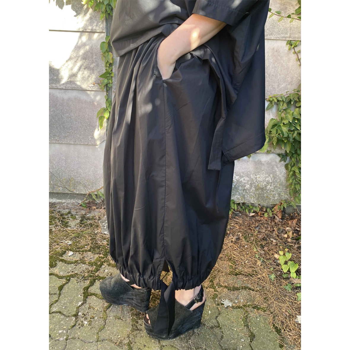 I underkanten har nederdelen et bredt bånd, som kan strammes ind og skabe en flot balloneffekt. Det giver nederdelen et unikt og legende udtryk, som du kan justere efter smag og beghag. Zero Skirt findes i de smukke farver rust og sort, og passer perfekt sammen med Tashi Tee i samme farver og kvalitet – begge designet med det samme smukke justerbare bånd i underkanten.