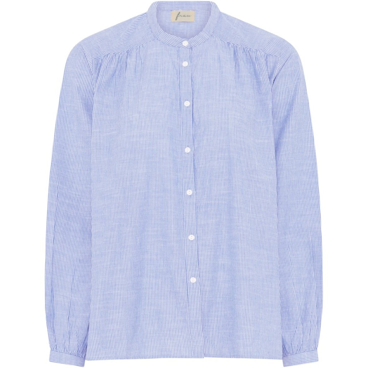 Florence skjorte har lange ærmer, kinakrave og feminine rynker ved skulderskæringen og på ryggen. Ved ærmerne har den også lidt feminint rynk.