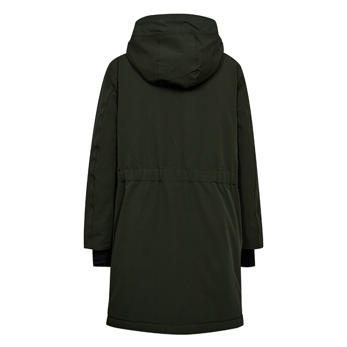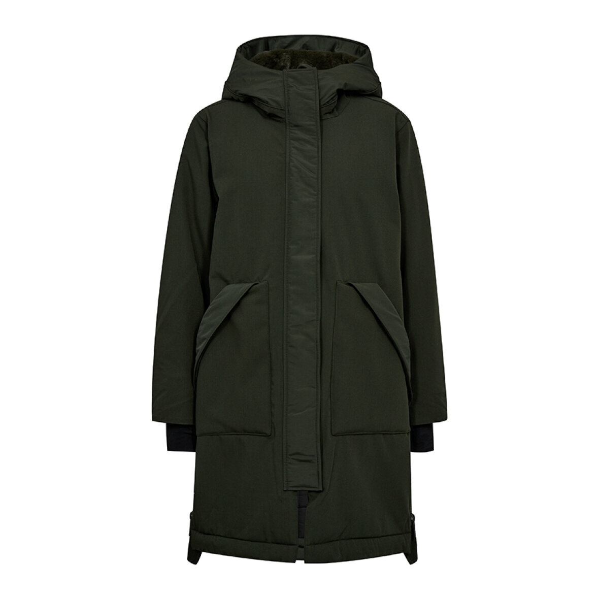 Hold varmen med denne lange frakke, der er designet med en praktisk hætte og skjult frontlukning for et rent, moderne udtryk. Den elastiske talje skaber en flatterende silhuet, mens lynlåsåbninger i siderne sikrer bevægelsesfrihed og alsidighed. Den er fremstillet med ETHERMALOFT®, en avanceret varmeteknologi, der absorberer og omdanner energi som sollys. Denne frakke er derfor perfekt til de kolde måneder.