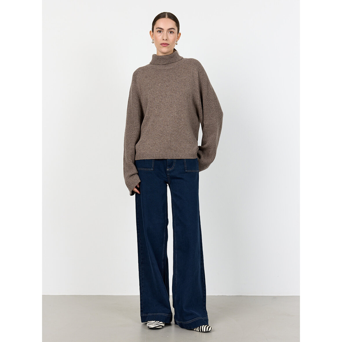 LR-OSSY 1 er en strik bestående af 50 % uld, 25 % lyocell og 25 % nylon. Denne pullover har en høj halsudskæring og ribbede detaljer. Sæt den sammen med skræddersyede bukser for et komplet look eller jeans for en mere afslappet stil.