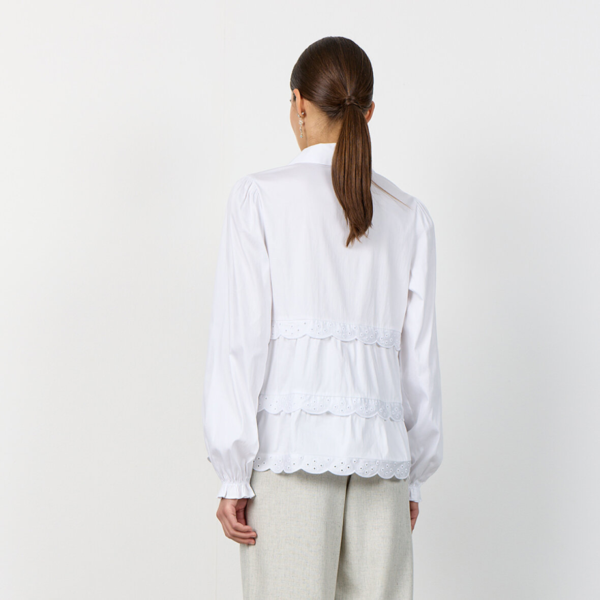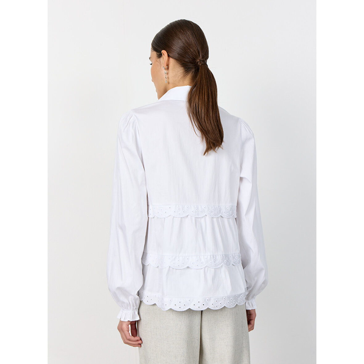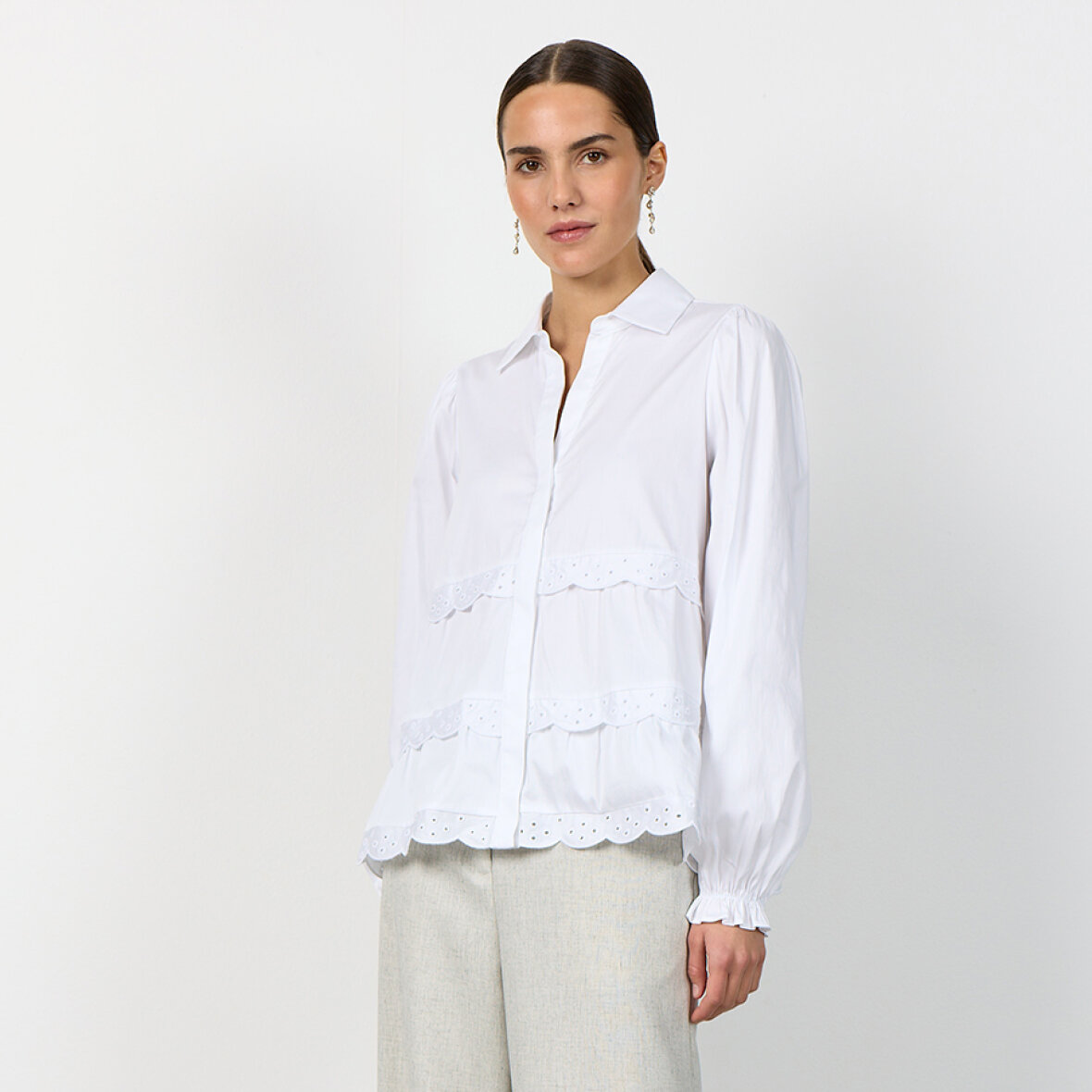 LR-ISLA SOLID 135 er en sød skjorte fremstillet af 65 % økologisk bomuld, 30 % polyamid og 5 % elastan. Designet har en klassisk krave, skjulte knapper og detaljerede, skulpterede kanter med subtil tekstur. Sæt den sammen med skræddersyede bukser eller en elegant nederdel for et elegant look.