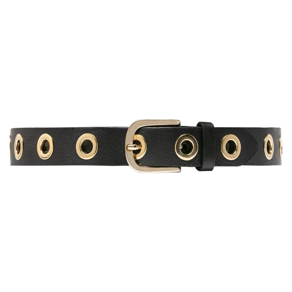 Bæltet er dekoreret med øjenit-nitter hele vejen rundt. Dette bælte vil helt sikkert løfte dit outfit til nye højder.
