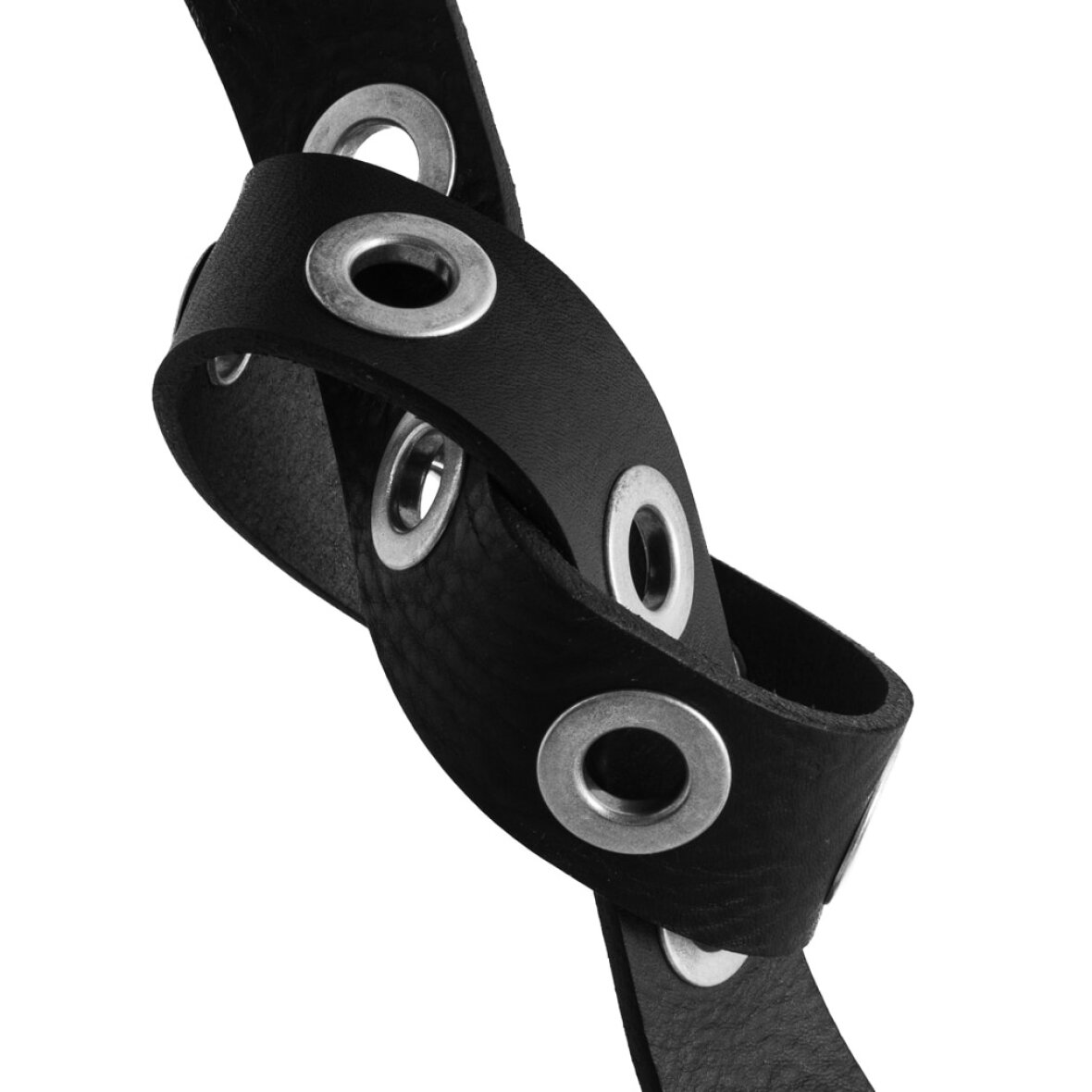 Bæltet er dekoreret med øjenit-nitter hele vejen rundt. Dette bælte vil helt sikkert løfte dit outfit til nye højder.