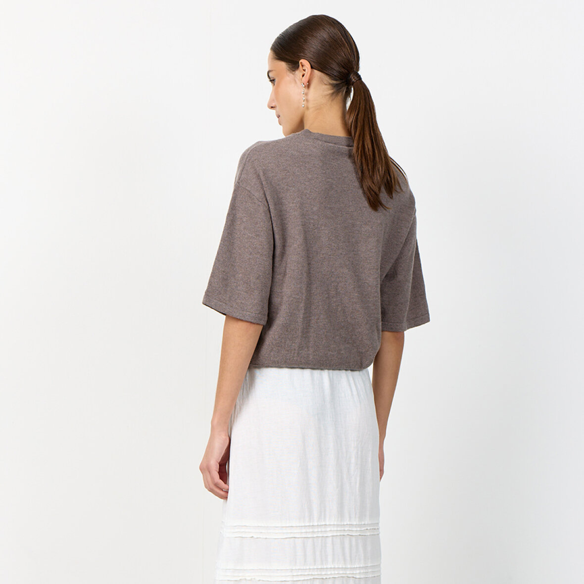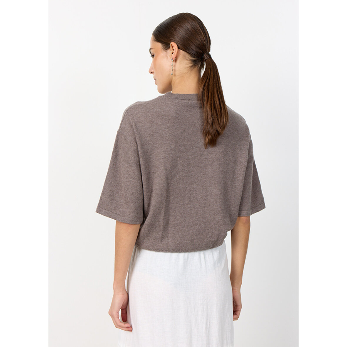 LR-ISMAILA 23 er en flot t-shirt fremstillet af 100 % merinould. Dette produkt har en stilfuld rund halsudskæring og korte ærmer, der giver en løs og behagelig pasform med en almindelig struktur. Sæt den sammen med skræddersyede bukser eller dine yndlingsjeans for et elegant og cool look.