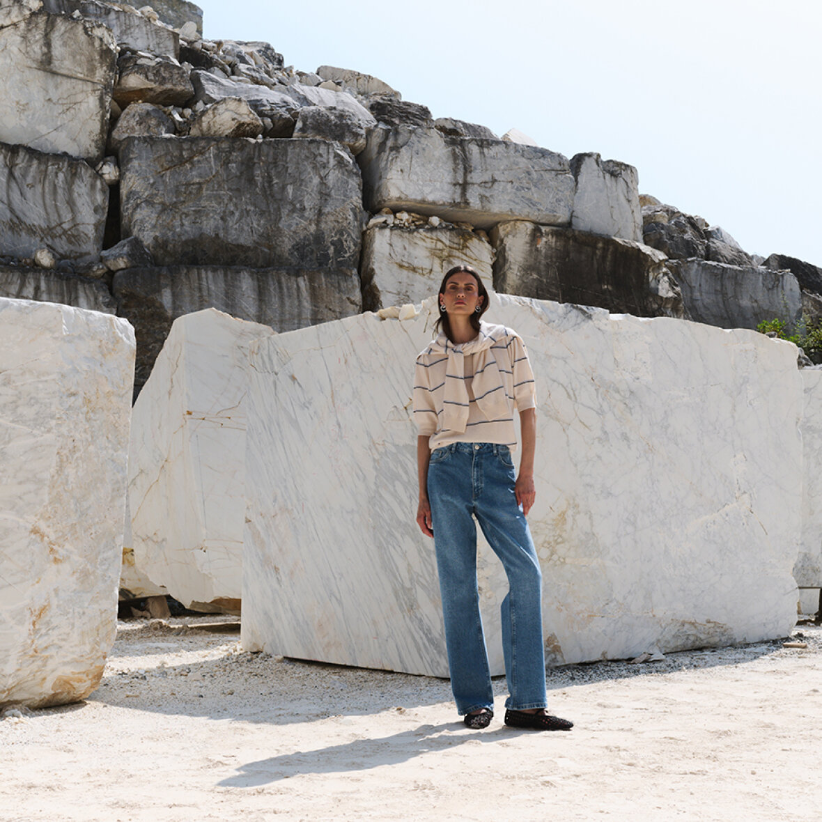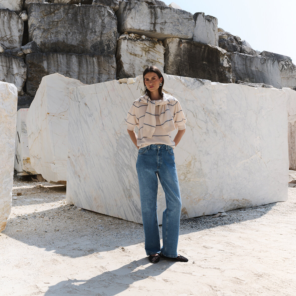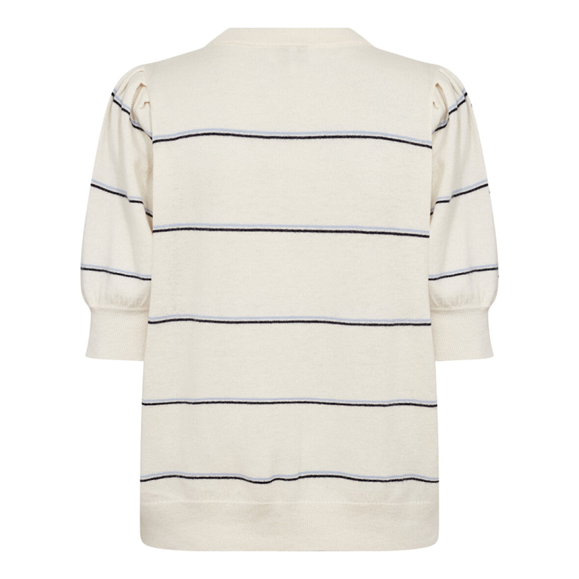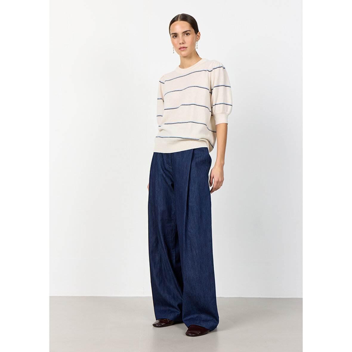 LR-ISMAILA 18 er en cool pullover fremstillet af 100 % merinould. Den har en stilfuld rund hals, subtile puffede korte ærmer og elegante vandrette striber. Sæt denne pullover sammen med skræddersyede bukser eller en nederdel for et raffineret look.