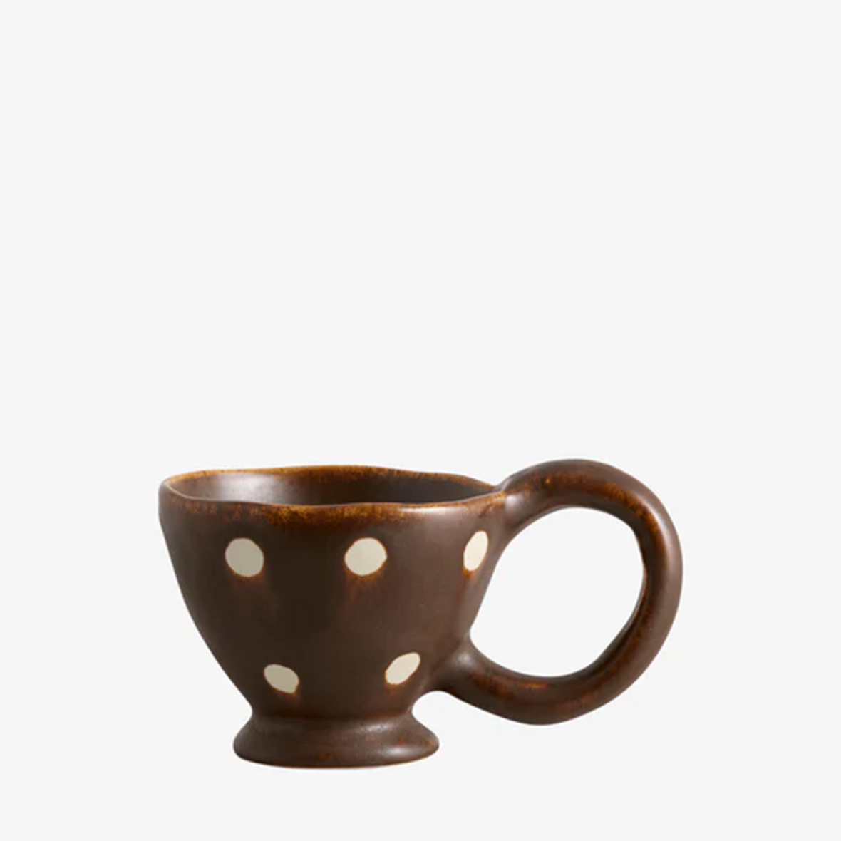 ZINA koppen fra Atelier FORMA emmer af charme og karakter. Den mørkebrune glasur giver et jordnært og tidløst udtryk, mens de håndmalede prikker tilfører et legende strejf. Den balancerede form og markante fod understreger koppens unikke silhuet – et lille stykke funktionel kunst, der forener tradition og modernitet. Hver kop er håndlavet og bærer sine egne fine variationer i farve og form.