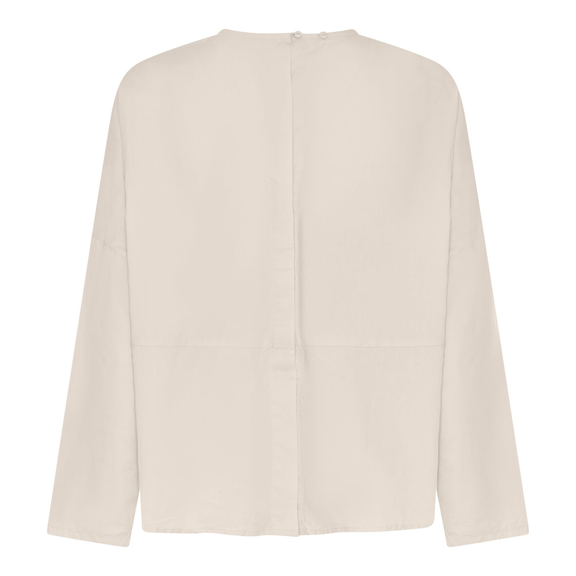 Romeo top har lange ærmer og et rent og simpelt look på fronten med en enkelt skæring på tværs. Toppen har en stolpedetalje på ryggen med en slids nederst.