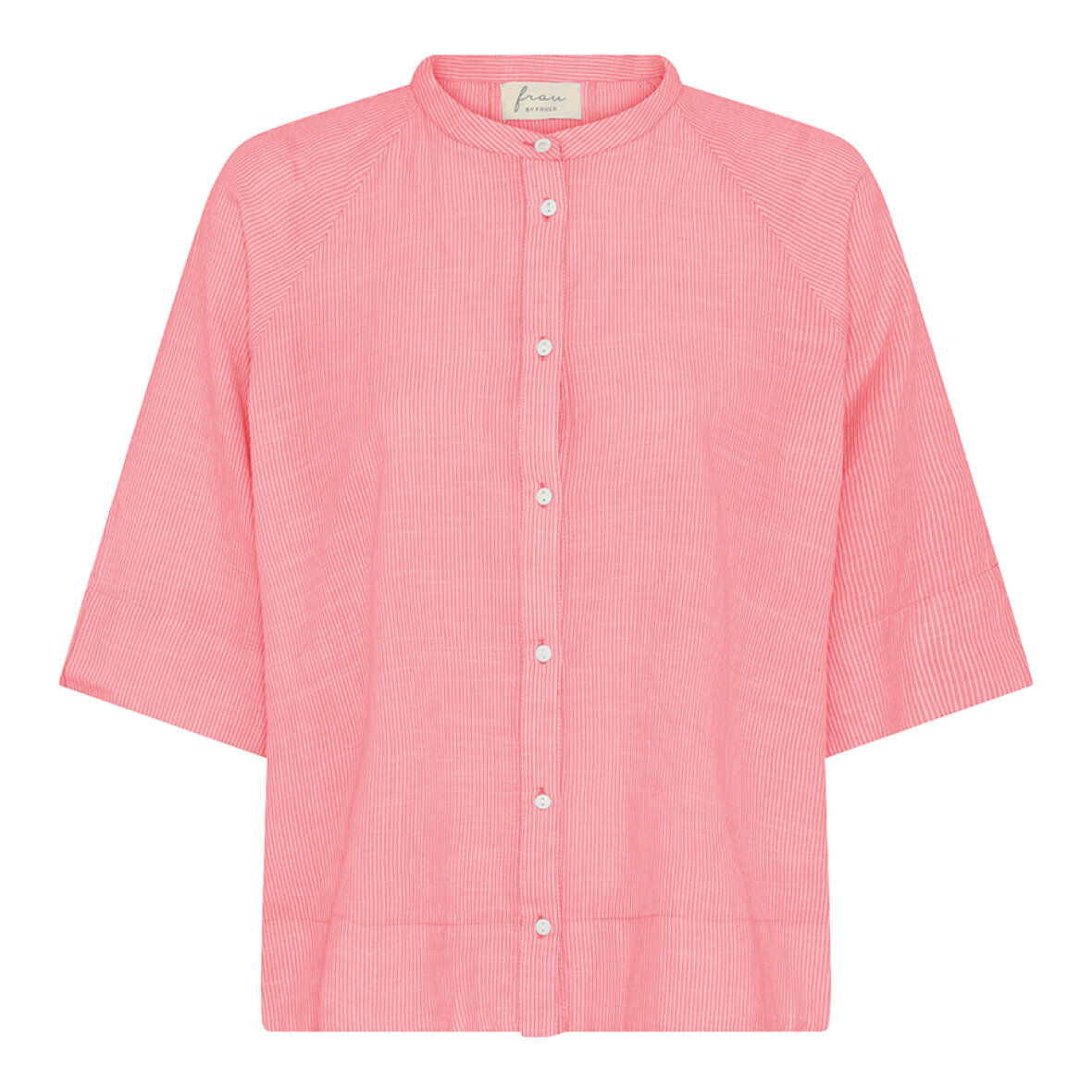 Skjorten har kinakrave og raglanærmer.