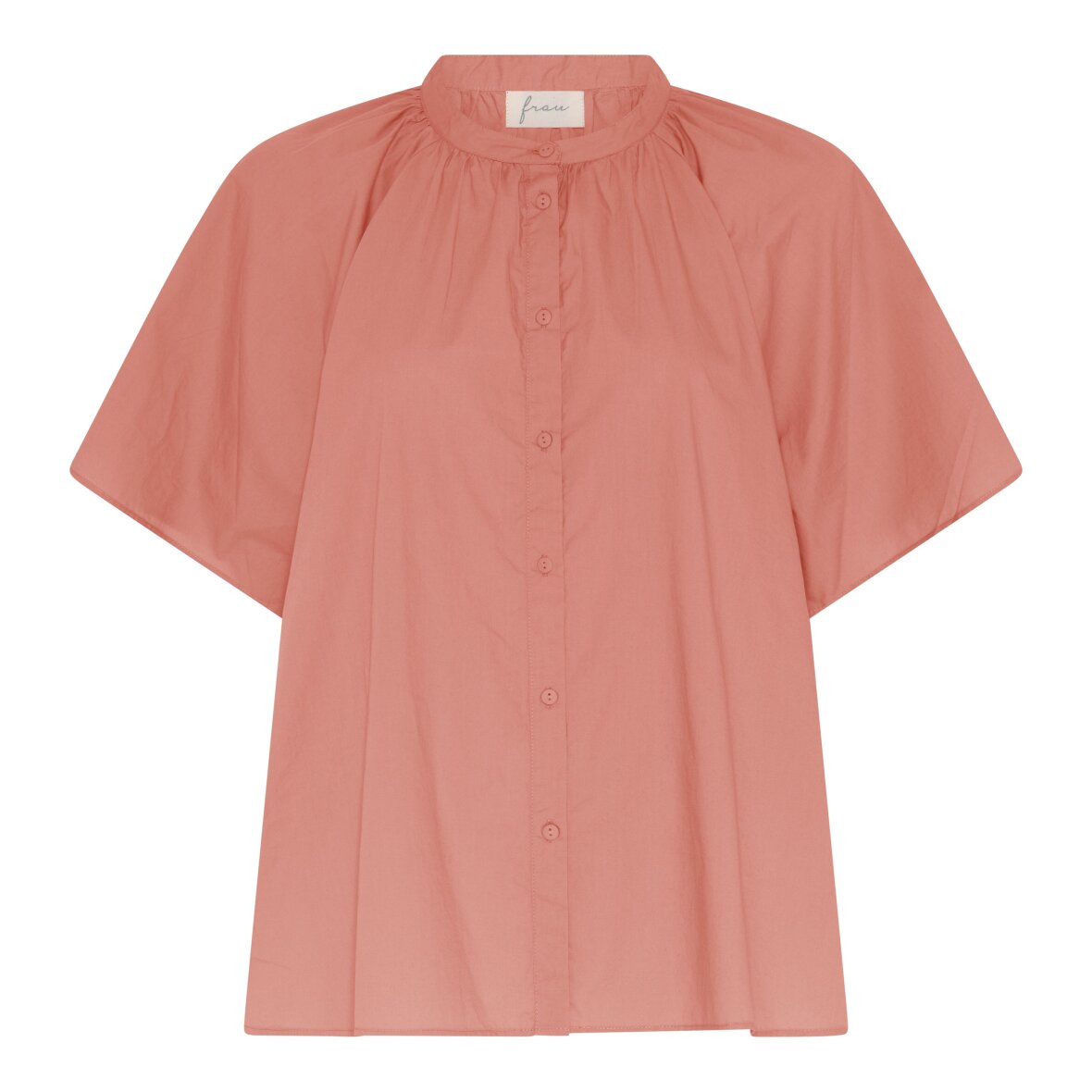 Siena kortærmet skjorte har raglan ærmer, kinakrave og feminine rynker ved skulder og halsskæringen.