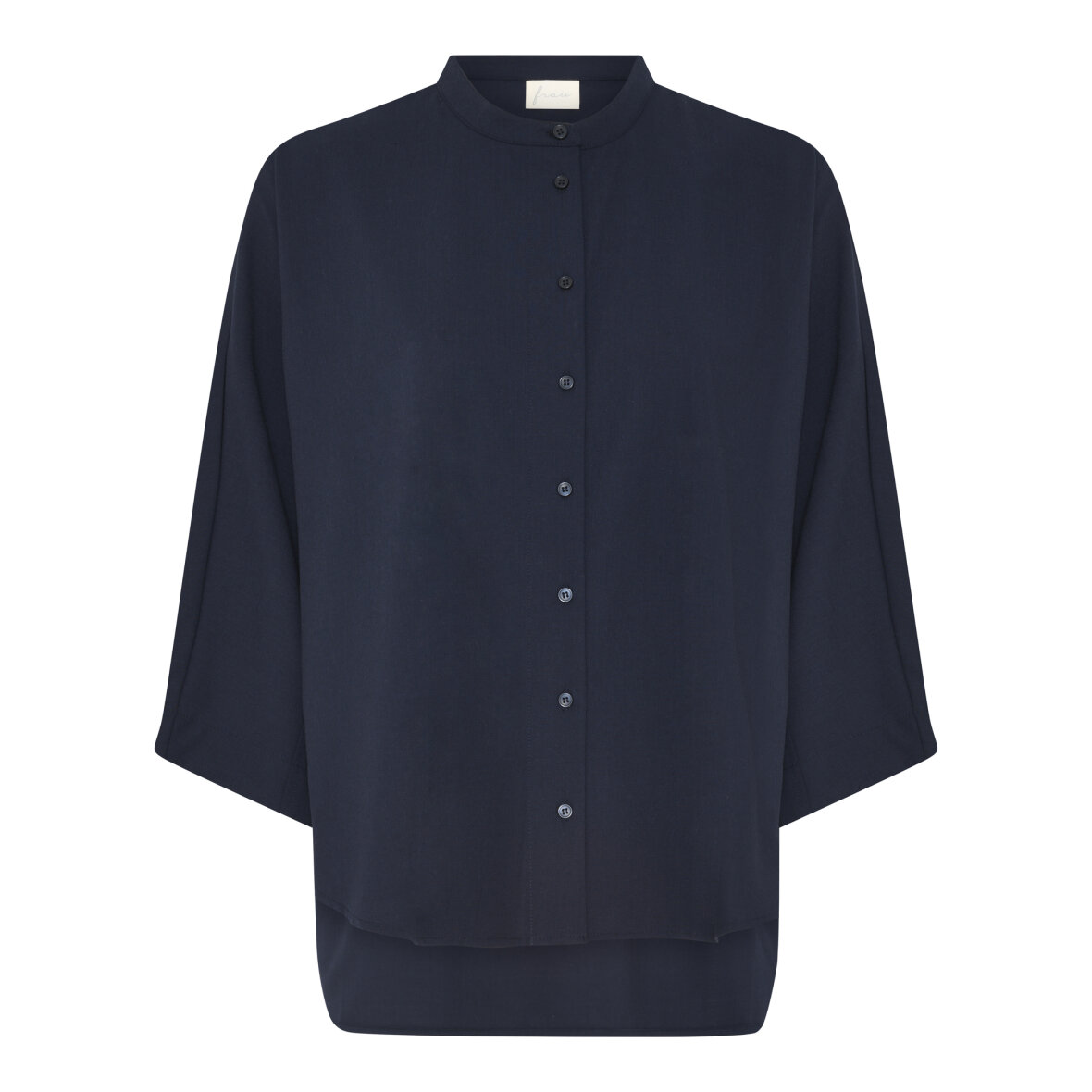 Skjorten har en simpel kinakrave, er gennemknappet på fronten med et 2/4 langt ærme.