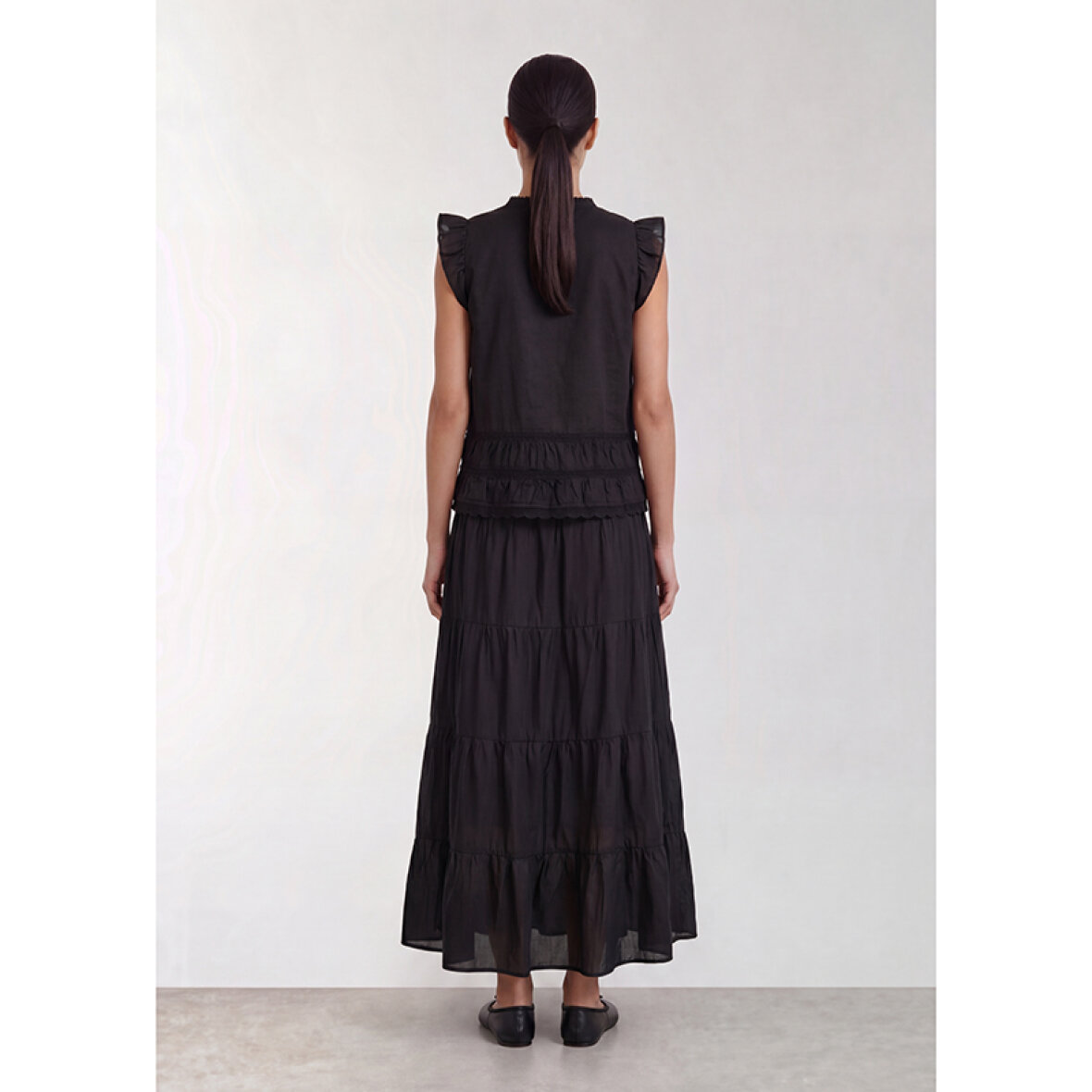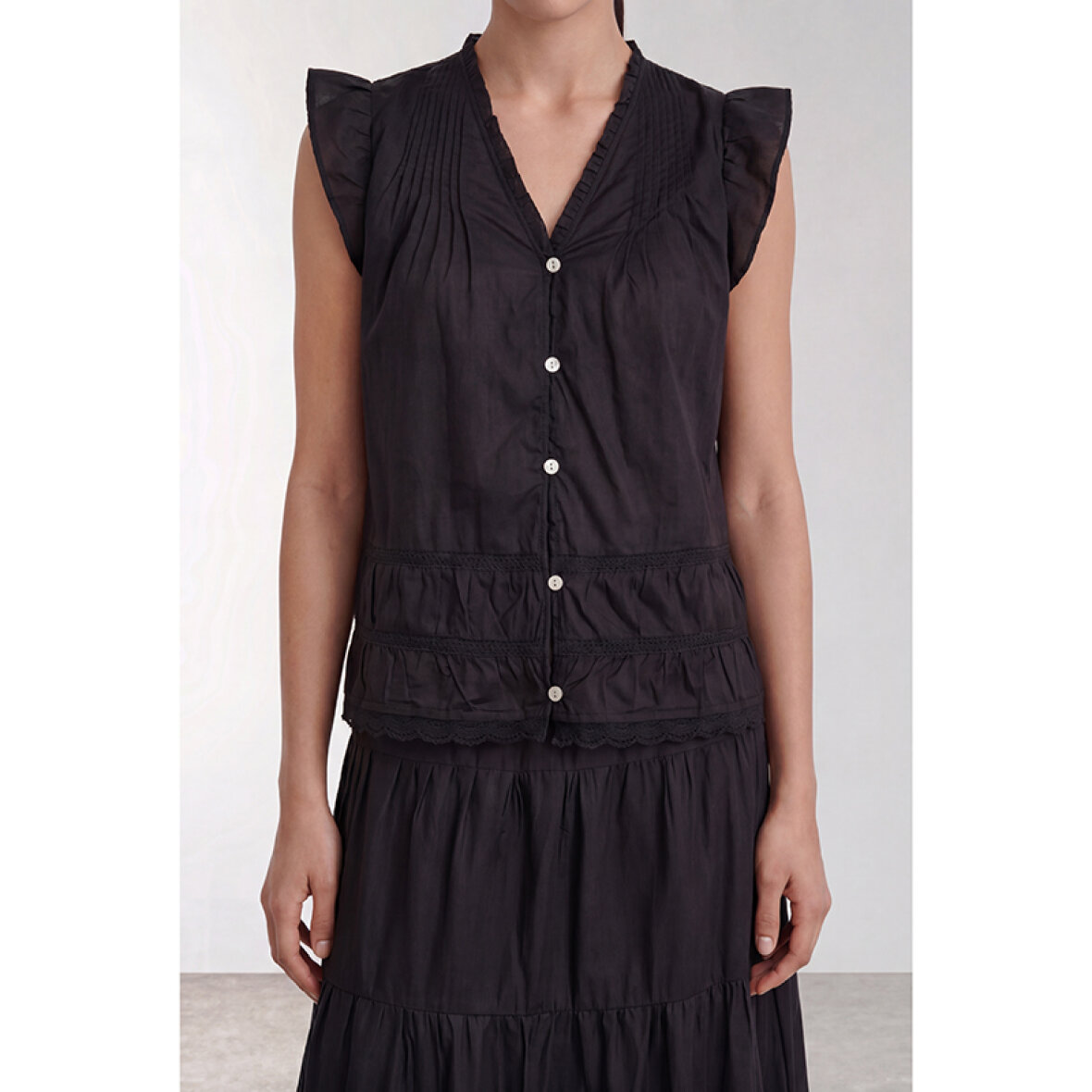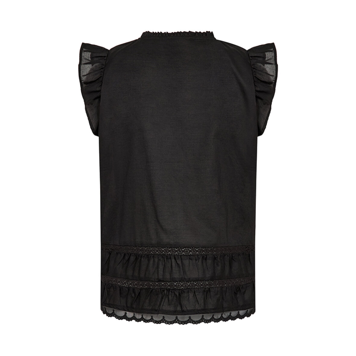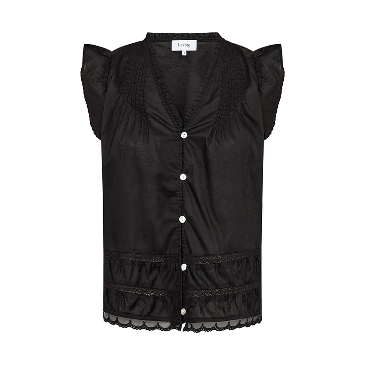 LR-ROSY 2 er en feminin bluse fremstillet af 100 % økologisk bomuld. Den har fine flæsedetaljer ved skuldrene, V-hals med knaplukning og fine blondeindsatser langs kanten. Sæt den sammen med dine yndlingsjeans eller en elegant nederdel for et afslappet, men elegant look.