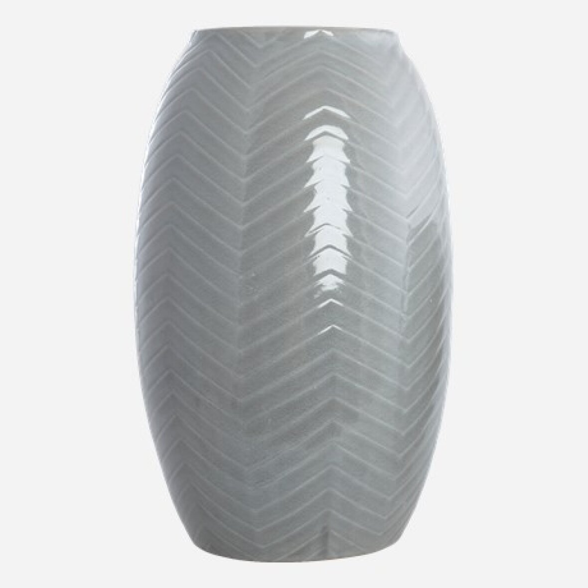 STYLE: DP0220 Zig zag xl vase i lys grå. Vasen er fremstillet af hvid ler der er glaseret. Mål: Dia: 16/22cm H: 39cm