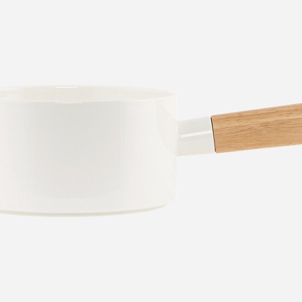 STYLE: GB0227 Flot serveringsskål i hvid porcelæn med håndtag i eg. Skal vaskes op i hånden. Mål: Dia: 20,5 cm. H: 11,9 cm. Håndtag l: 15 cm.